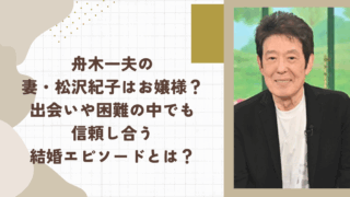 舟木一夫さんは歌手として、今もなお現役で活躍しています。 彼の若い頃は精神的に不安定な時もあり、順風満帆とは行きませんでした。 しかし、舟木さんのそんな姿を妻・松沢さんは支えてきたと言われています。 今回は、 舟木一夫さんの妻・松沢紀子さん...